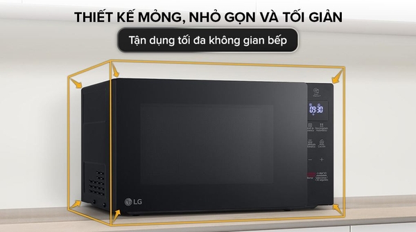 - Lò vi sóng LG có kiểu dáng nhỏ gọn giúp tiết kiệm diện tích và thiết kế tối giản với màu đen sang trọng, phù hợp với mọi không gian bếp.![]()