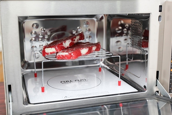 Khoang lò phẳng tráng men gốm, dung tích 23 lít, không đĩa xoay nên rất rộng rãi