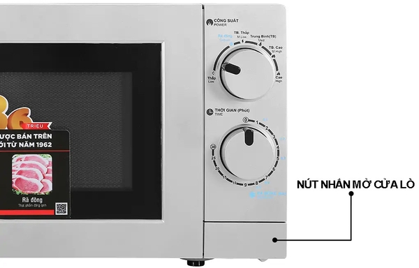 Cửa lò vi sóng đóng khít giúp hạn chế thất thoát nhiệt trong quá trình chế biến thức ăn. Kiểu mở cửa dạng nút nhấn dễ thao tác và đảm bảo an toàn tuyệt đối cho người sử dụng.![]()