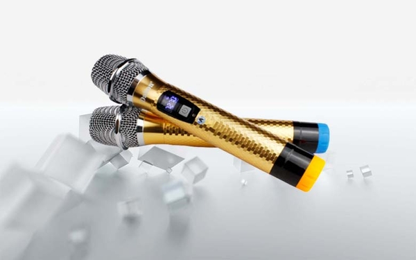 Hơn nữa, micro không dây có khả năng chỉnh được tần số kết nối. Việc này giúp cho loa tránh trường hợp trùng lặp tần số micro với các loa khác ở gần. Thân micro được thiết kế bằng chất liệu kim loại cứng cáp, sơn tĩnh điện màu vàng cùng họa tiết gấp tăng tính thẩm mỹ và vẻ sang trọng cho micro.