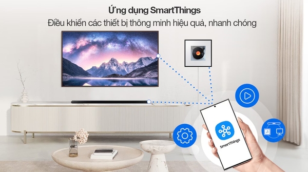 Bạn sử dụng điều khiển thông minh One Remote Control để tùy chỉnh từ xa các chức năng của loa Samsung được dễ dàng. Hơn nữa, bạn cũng có thể cài đặt ứng dụng SmartThings trên thiết bị di động như điện thoại, để kết nối và điều khiển các thiết bị thông minh trong nhà qua loa một cách nhanh chóng, tiện lợi.![]()