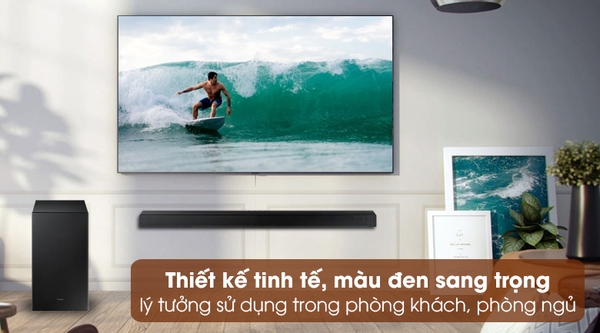 Cách bố trí bộ loa thanh Samsung tùy theo thẩm mỹ và thiết kế nội thất khác nhau, bạn có thể đặt cả loa thanh và loa Subwoofer trên kệ hoặc loa thanh trên kệ/treo tường còn loa Subwoofer để sàn.![]()