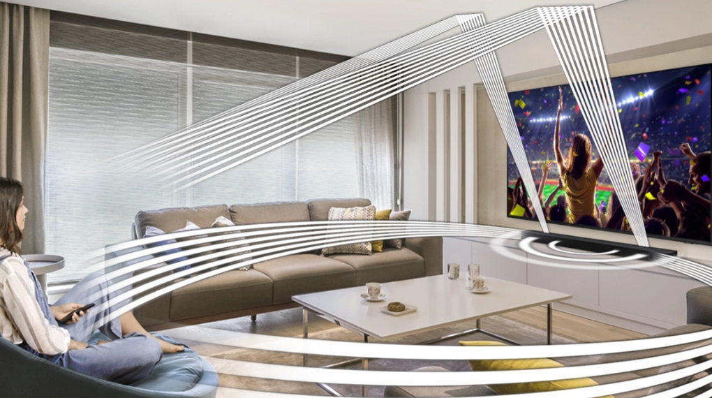 - Công nghệ âm thanh chuẩn Dolby Digital 5.1/DTS Virtual:X kết hợp với Surround Sound Expansion tạo sân khấu âm thanh 3 chiều, mang đến trải nghiệm bùng nổ, đặc biệt khi thưởng thức âm nhạc, phim hành động hay các trận đấu lớn.