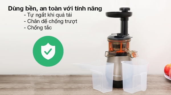 Máy ép chậm Kangaroo lưu giữ đến 80% lượng dưỡng chất có trong rau củ quả nhờ sử dụng công nghệ ép chậm.Hoạt động với công suất 150W, hệ thống trục ép mạnh mẽ cho ra nhiều nước ép hơn