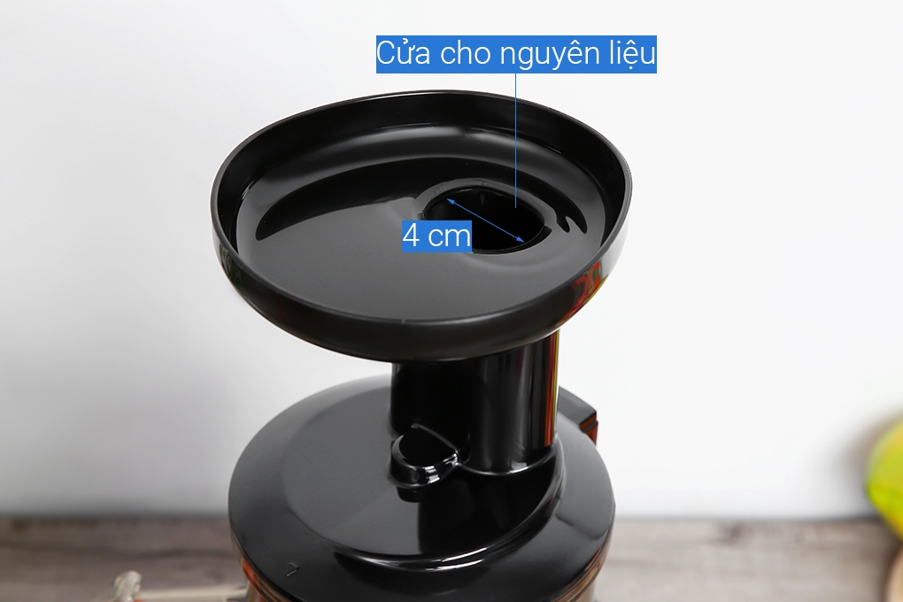 Ống tiếp nguyên liệu có đường kính 40 mm ép được trái cây nhỏ nguyên trái như dâu tây, dâu tằm, nho,... ![]()