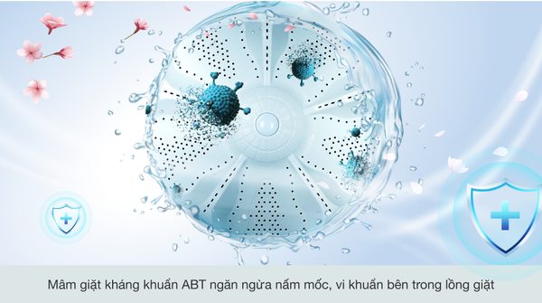Mâm giặt kháng khuẩn ABT trên máy giặt Aqua được VDE công nhận có thể ngăn ngừa vi khuẩn, nấm mốc 99.99%.