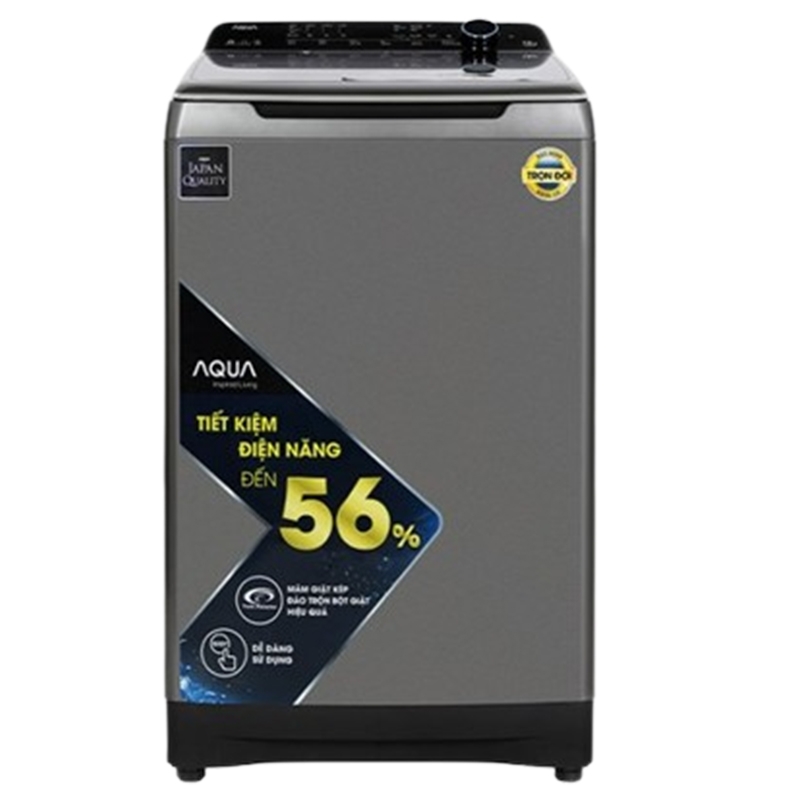 - Máy giặt Aqua này thuộc dòng máy giặt cửa trên, lồng đứng với thiết kế màu bạc nhìn khá đẹp mắt, tinh tế với phần vỏ máy bằng kim loại sơn tĩnh điện đảm bảo giảm được tình trạng oxy hóa cũng như giảm bị bào mòn màu sắc.