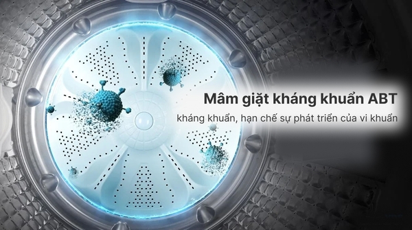 - Mâm giặt kháng khuẩn ABT được tích hợp trên sản phẩm có khả năng kháng khuẩn và ngăn chặn hiệu quả sự phát triển của vi khuẩn, góp phần bảo vệ sức khỏe của người tiêu dùng.