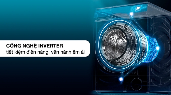 - Công nghệ Inverter trên máy giặt giúp động cơ hoạt động ổn định, nâng cao hiệu quả giặt giũ và tiết kiệm điện năng tối ưu.
