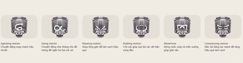 Máy giặt LG mô phỏng 6 chuyển động giặt khác nhau như giặt đập, giặt quay, giặt nén, giặt nhào trộn,… giúp quần áo được làm sạch tối ưu mà vẫn giữ được độ bền của sợi vải. Công nghệ này đặc biệt hữu ích cho những loại vải mỏng, đồ trẻ em hay trang phục cao cấp.![]()