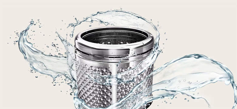 Nhờ công nghệ TurboDrum, lồng giặt và mâm giặt quay ngược chiều nhau tạo ra dòng nước mạnh mẽ, đánh bay vết bẩn cứng đầu. Đồng thời, quá trình này vẫn đảm bảo quần áo không bị xoắn rối hay hư hại.