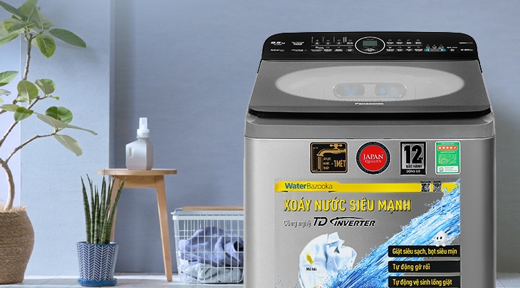 Máy giặt Panasonic có thiết kế phần thân chắc chắn cùng nắp kính chịu lực có thể dễ dàng quan sát lồng giặt sẽ là điểm nhấn hiện đại, sang trọng cho không gian nội thất của gia đình. ![]()