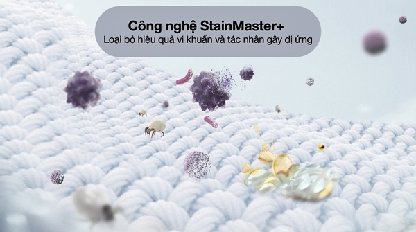 - Công nghệ giặt nước nóng StainMaster+ đánh bay các vết bẩn cứng đầu như bùn đất, mồ hôi, dầu mỡ đồng thời loại bỏ vi khuẩn cùng các tác nhân gây dị ứng để quần áo luôn sạch khuẩn và an toàn.