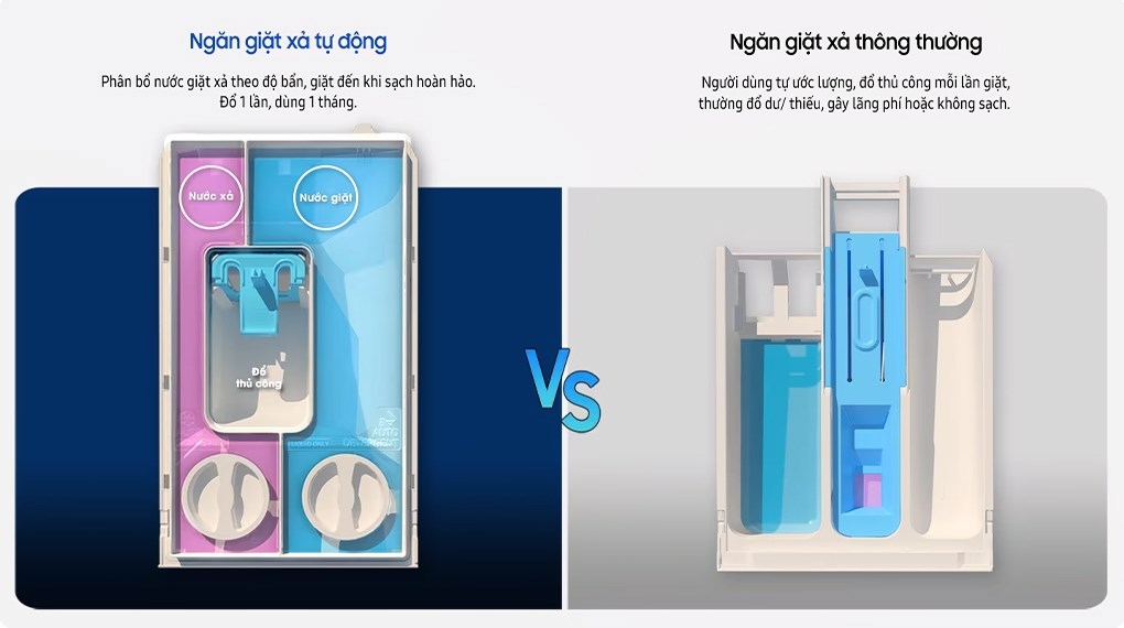 - Tự động phân bổ nước giặt hỗ trợ tối ưu hóa quá trình giặt giũ, giúp người dùng được thuận tiện trong quá trình giặt, tiết kiệm thời gian, nước giặt, nước xả và bảo vệ da tay của bạn.