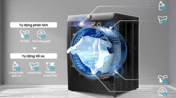 Tự động cảm biến khối lượng giặt, độ bẩn nhờ có công nghệ AI Wash