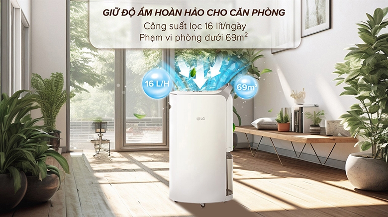 Máy hút ẩm LG 16L MD16GQSE0.ABAE sẽ giúp không gian sống luôn khô ráo, sạch sẽ và dễ chịu, đặc biệt là trong những ngày thời tiết ẩm thấp hoặc mùa mưa kéo dài.