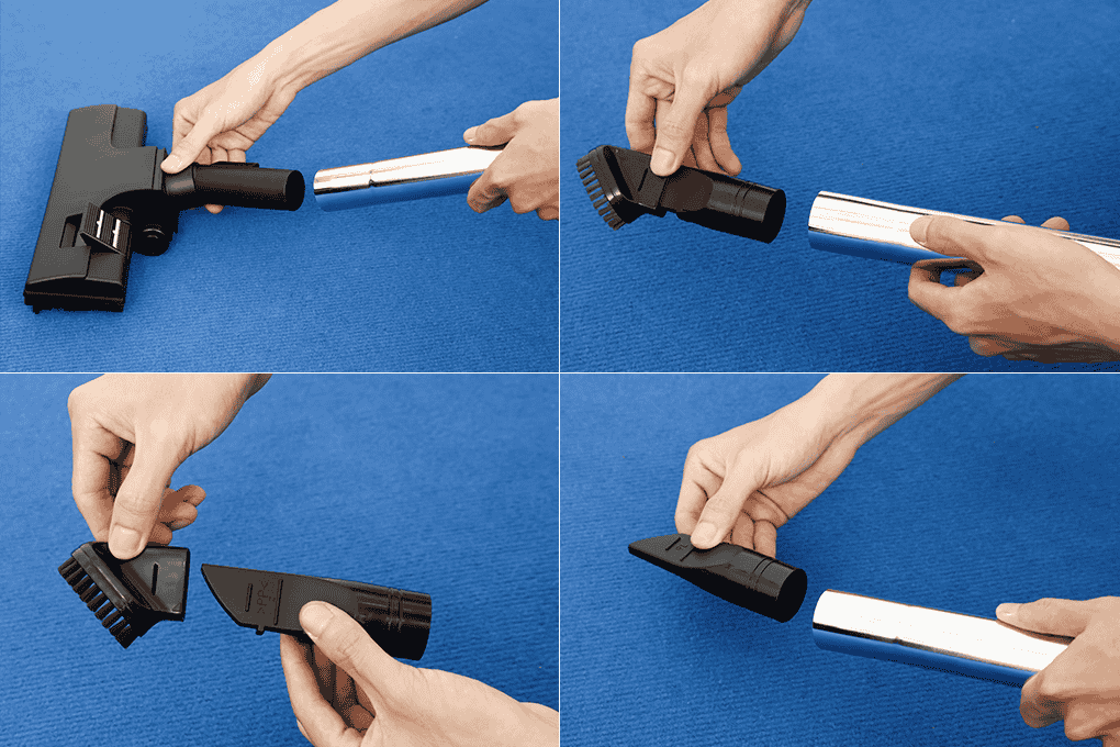 - Tiện lợi trong việc vệ sinh nhiều khu vực khác nhau với đầu hút chuyên biệt, có 3 loại đầu hút bao gồm: