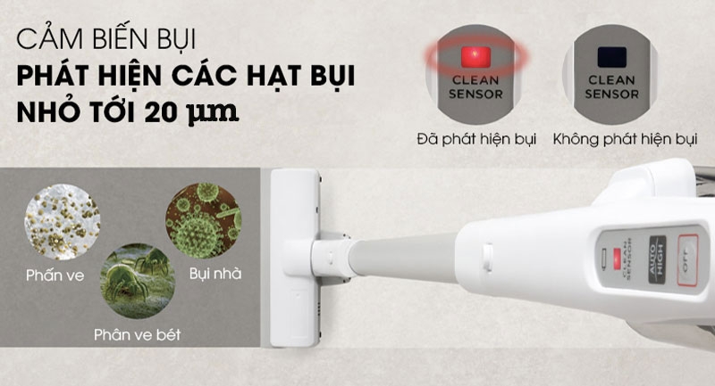 Máy hút bụi với trang bị chức năng cảm biến phát hiện bụi, giúp làm sạch toàn diện ngôi nhà của bạn