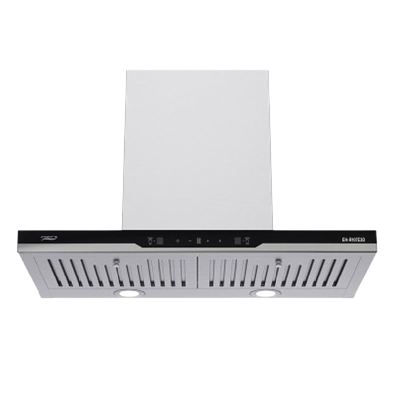 Máy hút mùi Chef's EH-R107E3D có thiết kế dạng chữ T nhỏ gọn, bề mặt phủ kính cường lực màu đen sang trọng, dễ dàng lau chùi vệ sinh.