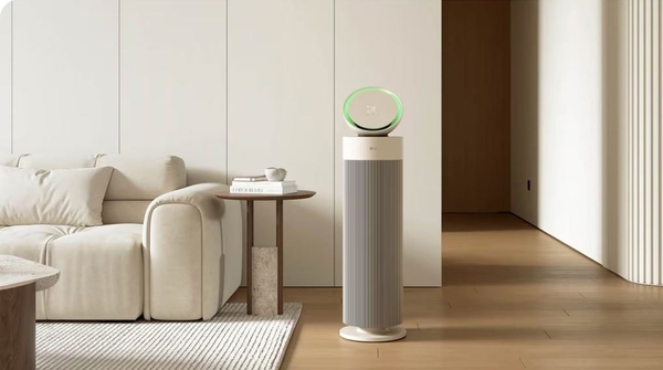 - Máy lọc không khí LG PuriCare Aero Booster có kiểu dáng hình trụ đứng nhỏ gọn, thiết kế độc đáo, tinh tế với màu be trang nhã, góp phần làm tăng tính thẩm mỹ cho ngôi nhà.
