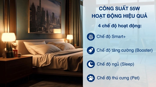 + Chế độ Smart+: tốc độ quạt được điều chỉnh tự động tùy theo tình trạng không khí.