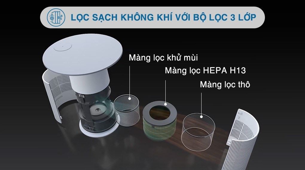 - Màng lọc HEPA H13: loại bỏ bụi mịn PM0.01, vi khuẩn, virus và chất gây dị ứng, đảm bảo không khí sạch hơn.