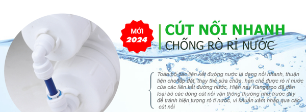- Toàn bộ các liên kết đường nước là dạng nối nhanh, thuận tiện cho lắp đặt, thay thế sửa chữa, hạn chế được rò rỉ nước của các liên kết đường nước. Hiện nay Kangaroo đã dần loại bỏ các dòng cút nối vặn thông thường như trước đây để tránh hiện tượng rò tỉ nước, vi khuẩn xâm nhập qua các cút nối. Với cút nối liền sẽ đảm bảo tối đa mọi rủi ro có thể xảy ra và cũng đảm bảo thêm về tính thẩm mỹ cho máy lọc nước nhà bạn![]()
