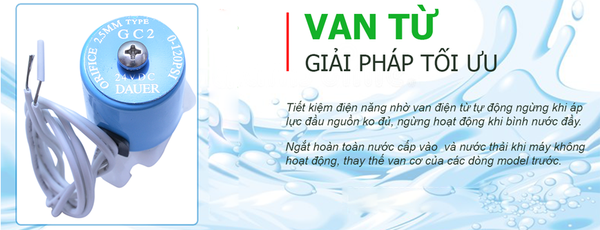 - Tiết kiệm điện năng nhờ van từ tự động ngừng khi máy bơm dừng hoạt động, ngắt hoàn toàn nước thải khi máy không hoạt động, thay thế hoàn toàn cho van cơ trước đây. Máy hoạt động ổn định hơn .![]()