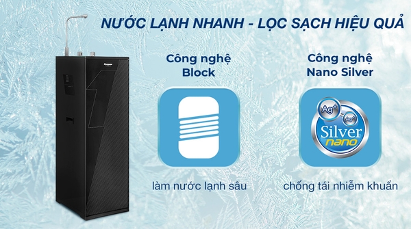 - Hệ thống làm lạnh bằng công nghệ Block cho nước lạnh sâu, nhanh chóng.