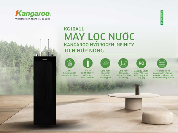 Duy nhất Kangaroo có bằng sáng chế độc quyền thiết bị lọc nước Hydrogen. Nước Hydrogen tươi bổ sung vi khoáng tự nhiên và chất điện giải có lợi, giúp tăng cường miễn dịch và nước có vị ngon tự nhiên. Đồng thời hoạt động như một chất chống oxy giúp loại bỏ gốc tự do có hại gây lão hóa, các bệnh dạ dày…