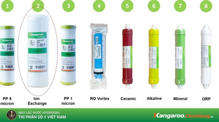 Lõi số 8 (ORP): Tạo nước Alkaline có độ điện giải thấp và giúp tái tạo năng lượng nhanh, duy trì sức khoẻ, hỗ trợ loại bỏ tác nhân gây lão hóa và giúp cân bằng độ pH trong cơ thể.