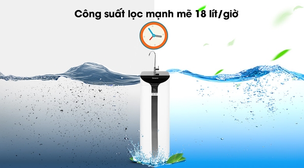 Trong điều kiện tiêu chuẩn, với 10 lít nước đưa vào máy sẽ lọc được 4.8 lít nước tinh khiết để uống và 5.2 lít được thải ra ngoài.