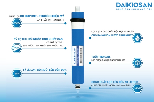 Máy lọc nước RO nóng nguội lạnh Daikiosan DSW-32709H3 sử dụng màng lọc màng lọc RO được nhập khẩu từ Hàn Quốc giúp loại toàn bộ các chất độc hại, vi sinh vật, vi khuẩn, siêu vi khuẩn… mang lại nguồn nước trở nên hoàn toàn tinh khiết.![]()