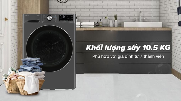 - Khối lượng sấy 10.5 kg phù hợp cho nhu cầu sử dụng gia đình từ 7 thành viên.![]()