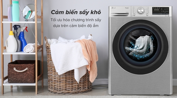 - Ngoài ra, máy sấy LG còn có tính năng ghép nối thông minh với LG ThinQ. Thông qua Wi-Fi, tính năng này sẽ giúp máy sấy tự động lựa chọn chu trình sấy thích hợp thông qua cách nhận diện dữ liệu từ máy sấy quần áo LG.