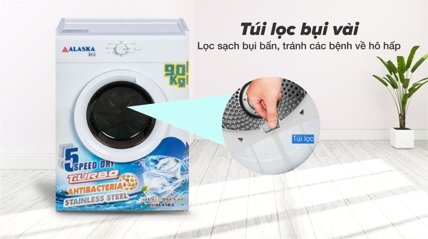 Túi lọc nhỏ được trang bị trong máy sấy thông hơi giúp lọc những bụi vải mà mắt thường khó thấy được sau mỗi lần sấy. Nếu chúng ta hít phải những hạt bụi này trong thời gian dài sẽ ảnh hưởng đến sức khỏe, đặc biệt là các vấn đề về hô hấp. Những gia đình có em bé hoặc người mẫn cảm với bụi bẩn sẽ thích hợp nhất với tính năng này.![]()
