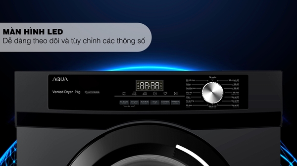 - Máy sấy Aqua có nhiều tiện ích để hỗ trợ người dùng, giúp việc sấy quần áo dễ dàng hơn bao giờ hết như: tuỳ chỉnh thời gian sấy và nhiệt độ sấy, khoá trẻ em, hẹn giờ sấy, tạm dừng thêm quần áo,...