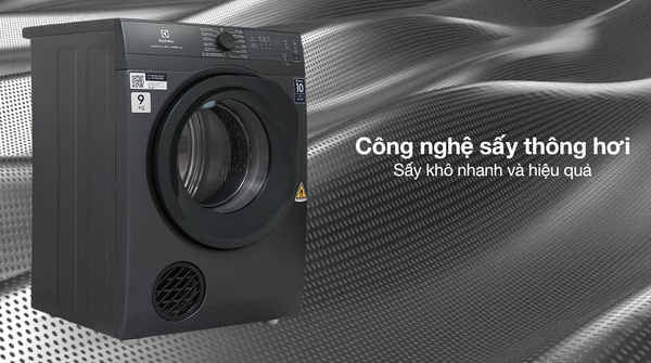 - Ứng dụng công nghệ sấy thông hơi, giúp quần áo khô nhanh và hiệu quả. Để đạt hiệu suất tối ưu, máy nên được đặt ở vị trí thông thoáng.