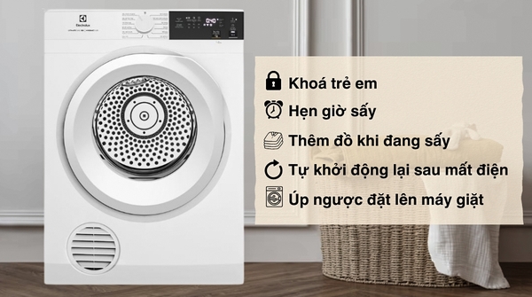 - Thêm đồ khi đang sấy cho phép tạm dừng chu trình và bổ sung quần áo còn sót mà không làm gián đoạn toàn bộ quá trình.