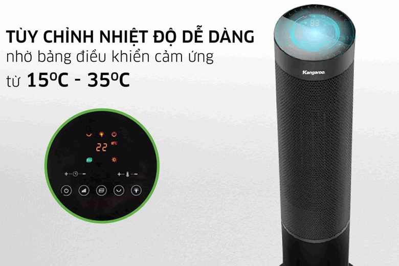 Hệ thống quạt Kangaroo được trang bị bảng điều khiển cảm ứng điện tử và màn hình LED hiển thị nhiệt độ trên thân máy trợ giúp người dùng dễ dàng sử dụng theo dõi nhiệt độ và chế độ hoạt động của hệ thống khi đang hoạt động. Bên cạnh đó, điều khiển từ xa cho phép người dùng không cần chuyển đổi mà vẫn có thể thay đổi tất cả các chức năng của quạt. Chiếc điều khiển mang đến cho người dùng sự thuận tiện khi sử dụng cũng như tiết kiệm được nhiều thời gian di chuyển.![]()