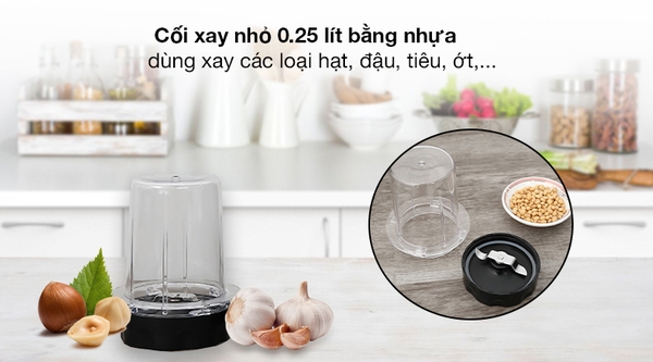 Cối xay hạt nhỏ gọn 0.25 lít đáp ứng nhu cầu xay tiêu, tỏi, hành, các loại đậu, hạt,...![]()