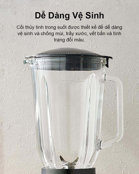 Cối xay chính được làm bằng thủy tinh trong suốt, không mùi, không đổi màu, hạn chế trầy xước và dễ dàng vệ sinh sau mỗi lần sử dụng.![]()