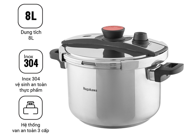 Nồi áp suất NAG1481 với dung tích 8L có khả năng ninh, hầm như các món thịt, xương, chè, súp đáp ứng nhu cầu sử dụng cho gia đình lên tới 10 người.