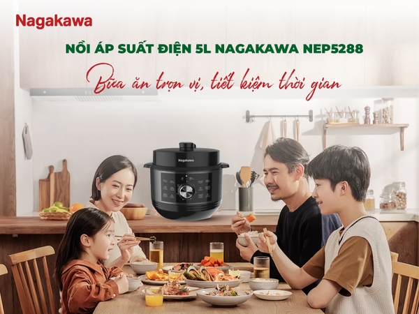 Cuộc sống bận rộn khiến bạn không có nhiều thời gian chuẩn bị bữa ăn cho gia đình? Nồi áp suất điện 5L Nagakawa NEP5288 chính là trợ thủ đắc lực, giúp bạn nấu ăn nhanh chóng, tiện lợi mà vẫn giữ trọn hương vị và dinh dưỡng trong từng món ăn.![]()