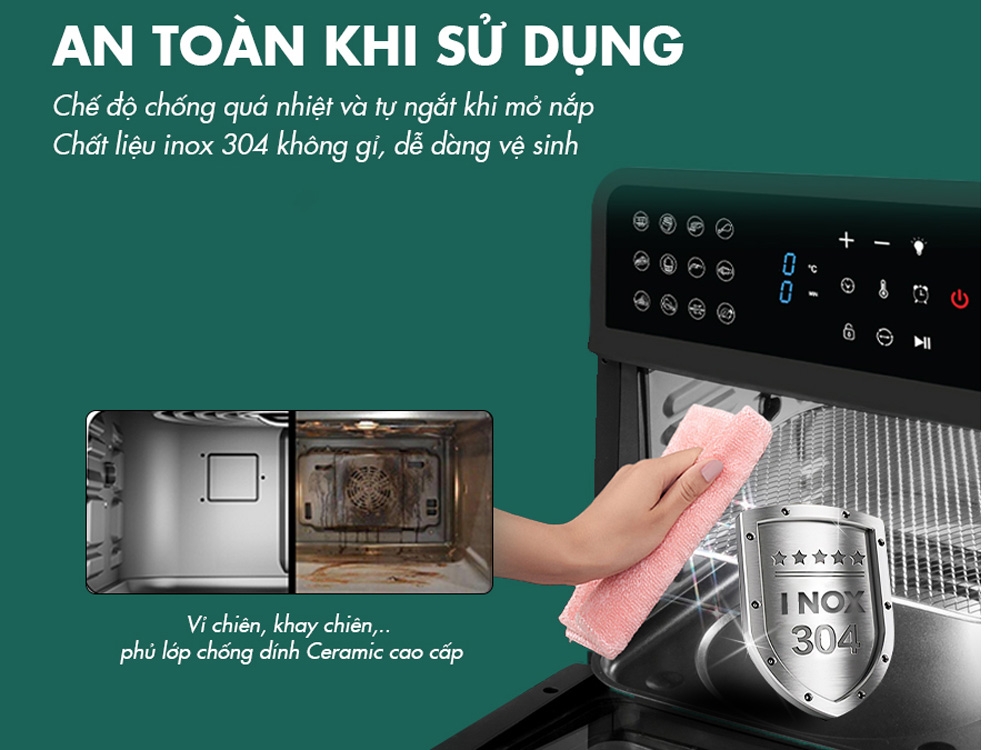 Không chỉ có thiết kế đẹp, nồi chiên Nagakawa NAG3307 còn được chế tạo từ chất liệu cao cấp, giúp bạn an tâm sử dụng. Vỏ nồi dày dặn, có khả năng chịu lực, chịu nhiệt, hạn chế móp méo, biến dạng trong quá trình sử dụng. Khoang lò được làm từ inox 430 siêu bền, sáng bóng, chịu nhiệt cao, không thôi nhiễm chất độc hại khi tiếp xúc với nhiệt độ cao, dễ dàng vệ sinh, lau chùi.