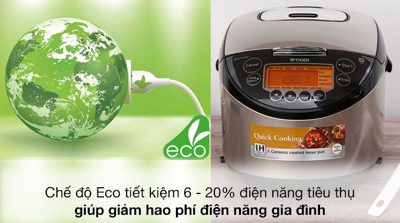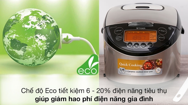 Nồi cơm điện Tiger có chế độ Eco giúp tiết kiệm từ 6 - 20% điện năng tiêu thụ, giảm hao phí điện năng cho gia đình hiệu quả![]()