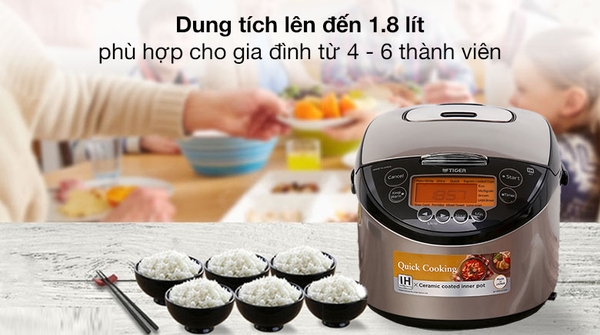 Nồi có dung tích 1.8 lít, nấu được khoảng 8 - 10 cốc gạo, đáp ứng khẩu phần cho gia đình 4 - 6 thành viên![]()