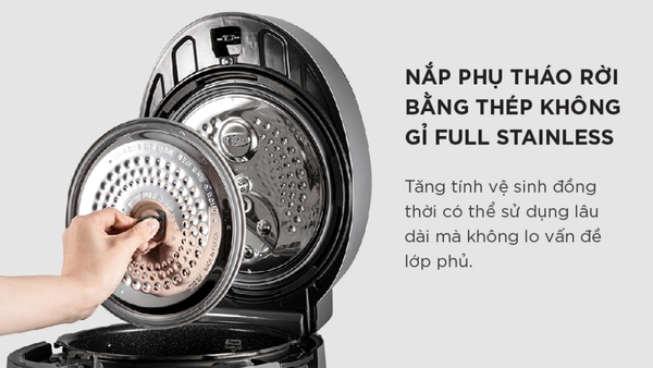 Nắp phụ bằng thép không gỉ Full Stainless – Dễ dàng tháo rời, tiện vệ sinh