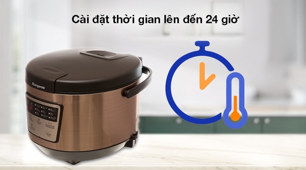 Cài đặt thời gian lên đến 24 giờ, cơm sẽ chín vào đúng giờ hẹn và chuyển sang chế độ giữ ấm