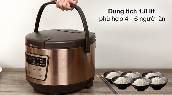 Dung tích 1.8 lít có thể nấu được 8 - 10 cốc gạo, phục vụ khẩu phần cơm cho gia đình 4 - 6 thành viên